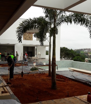 Foram utilizadas Palmeiras Rabo de Raposa, Palmeiras Carpentarias, Jabuticabas e forrações